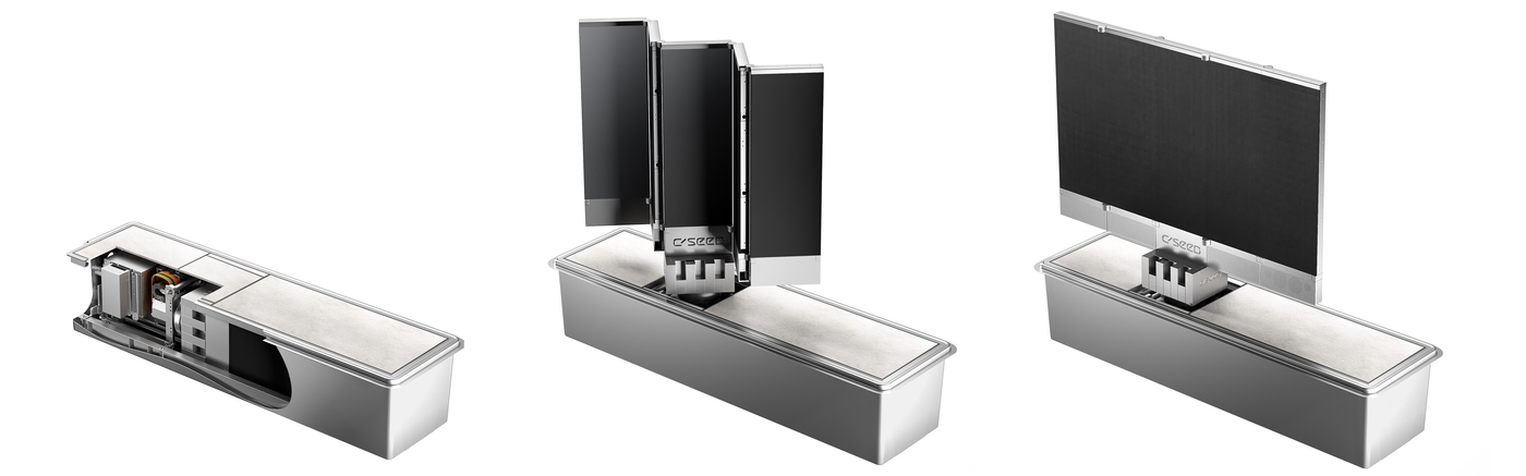 Every detail of the HLR series is conceived with spatial intelligence. The TV is discreetly housed within a compact compartment box measuring only 85 cm (33.4 inches), powered by a state-of-the-art horizontal lifting mechanism. When activated, the TV unfolds gracefully, integrating into its surroundings as if it had always belonged there. This is technology that respects space, architecture, and the flow of life outdoors.